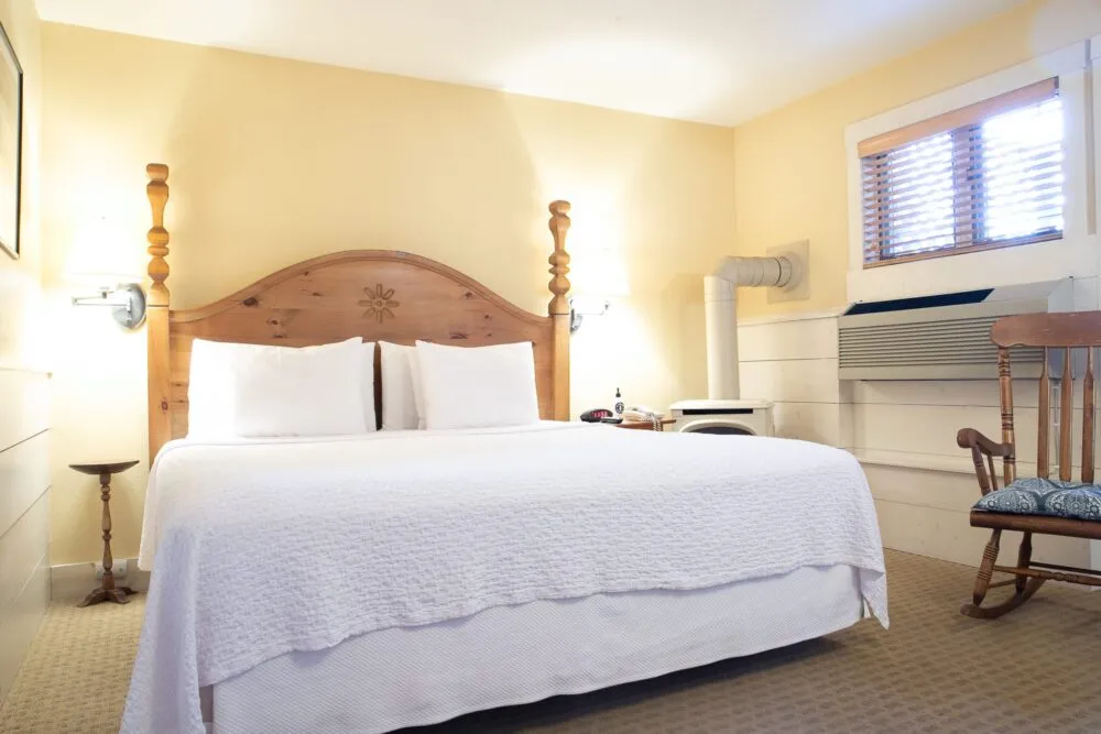 The Alpine Suite – Kitchenette is an apartment style suite featuring a bedroom with a king bed, a full kitchen, and living room.